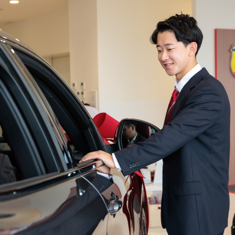 私がこの仕事で一番好きな所は、接客を通じ、お客様の笑顔を見る瞬間です。自分が提供したクルマに誇りを持ち、それを感謝される瞬間が毎日楽しみです。自信を持ってお客様のニーズに合ったものを提供できるよう日々のインプットを欠かさず行っています。お客様との信頼関係、尊敬、そして感謝の気持ちを忘れず業務にあたっています。