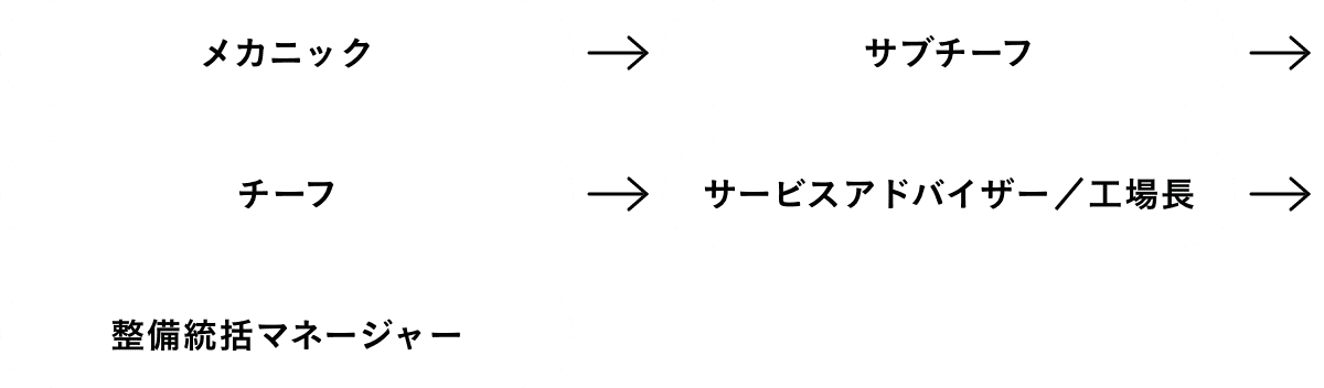 メーカー認定資格の取得を支援し、将来的にはサービスアドバイザーや工場長へのキャリアも目指せます。